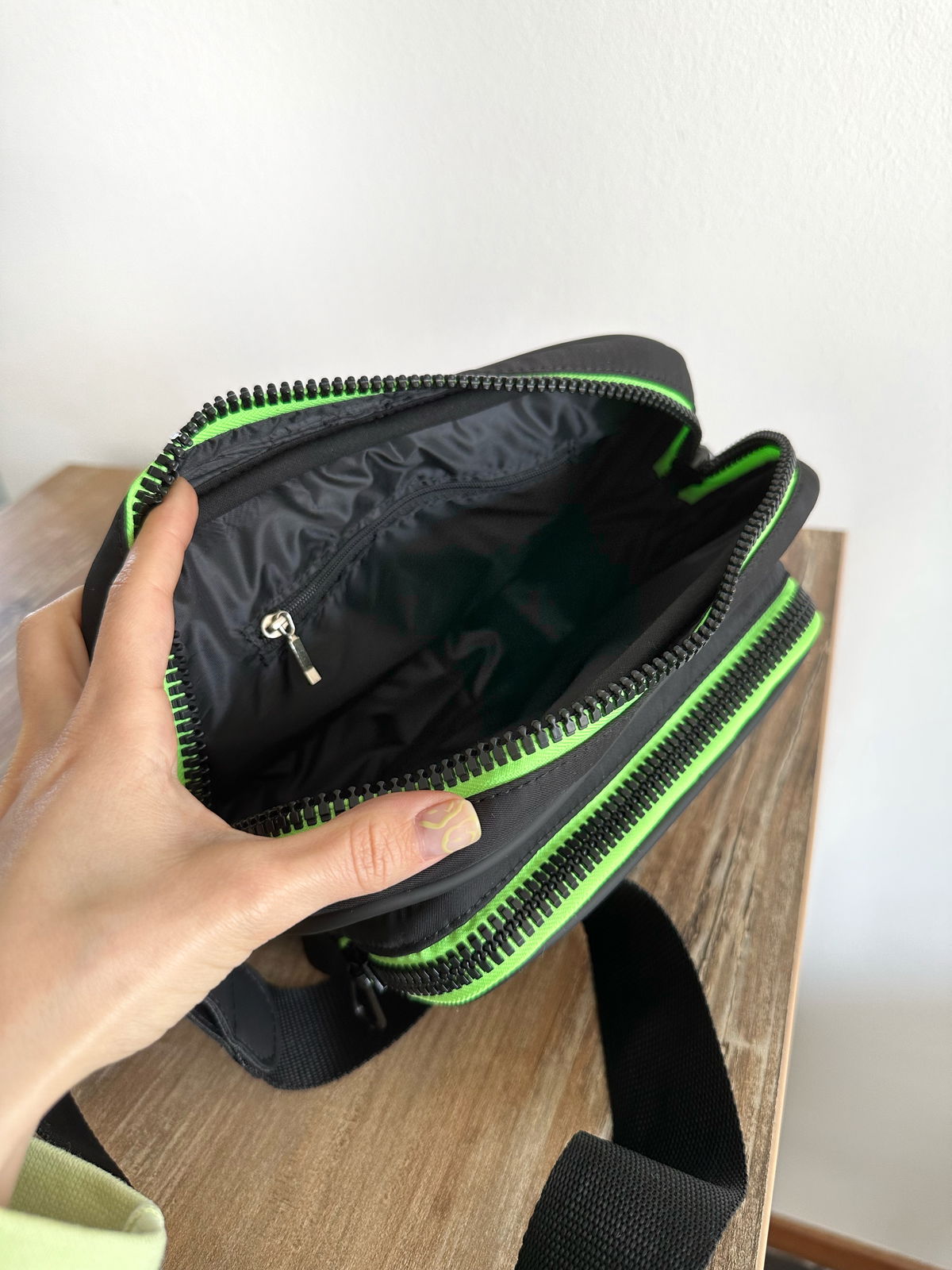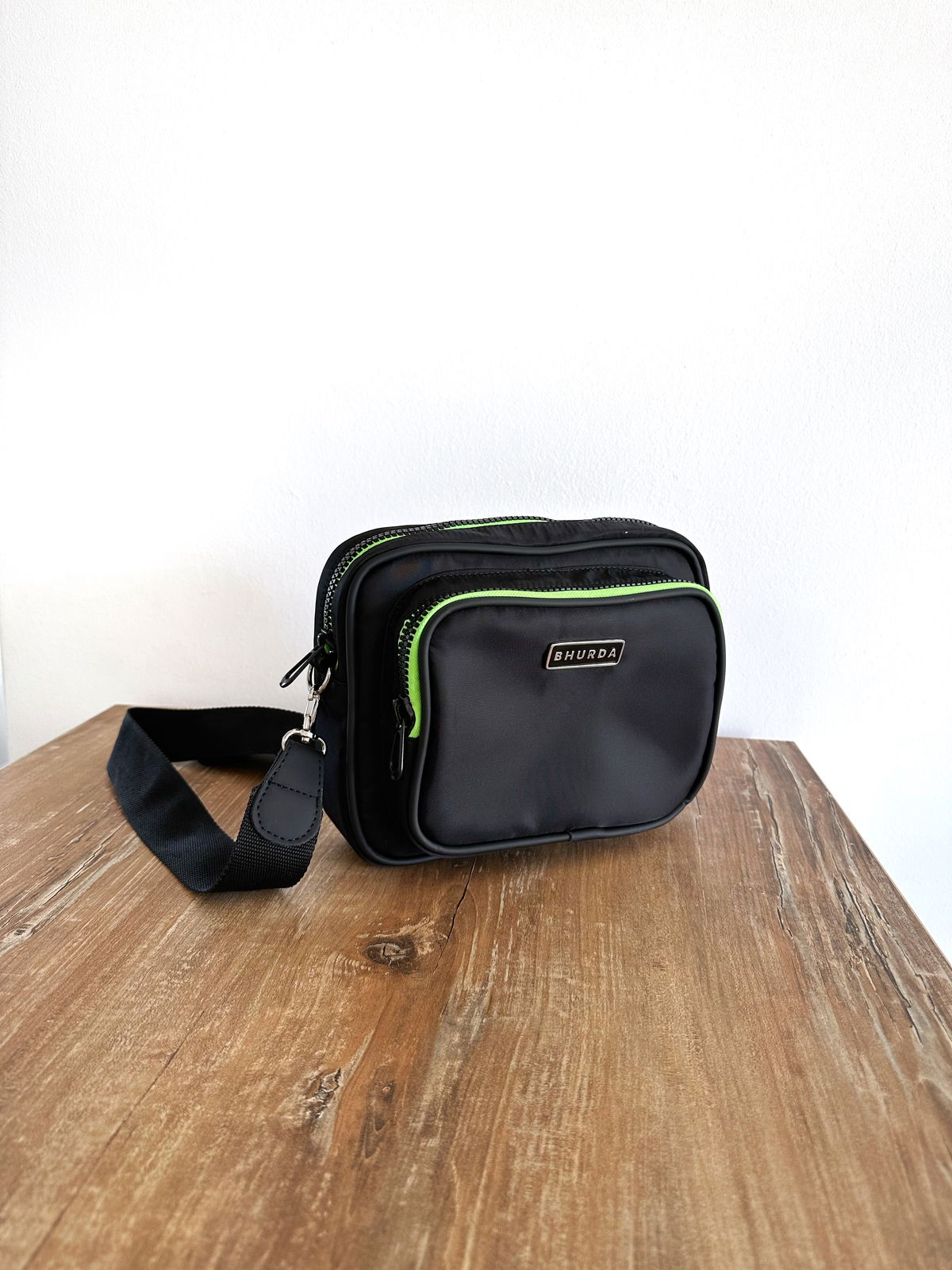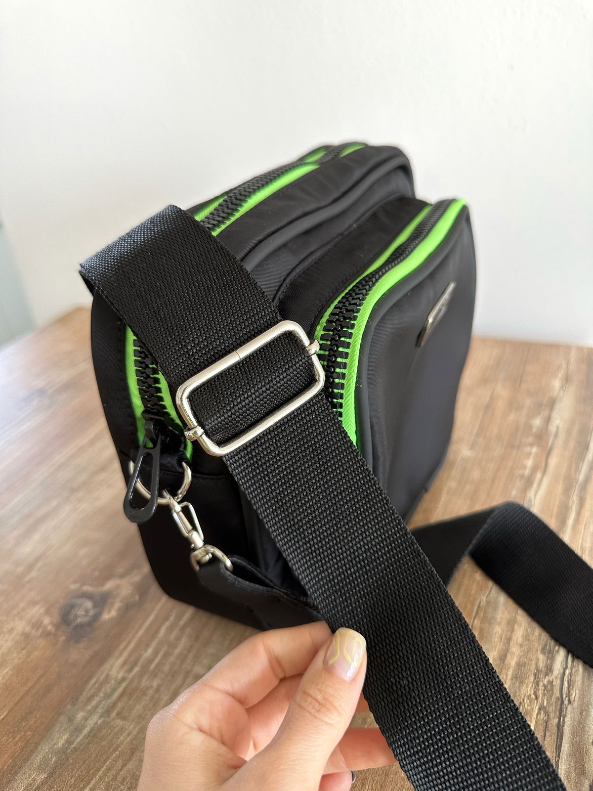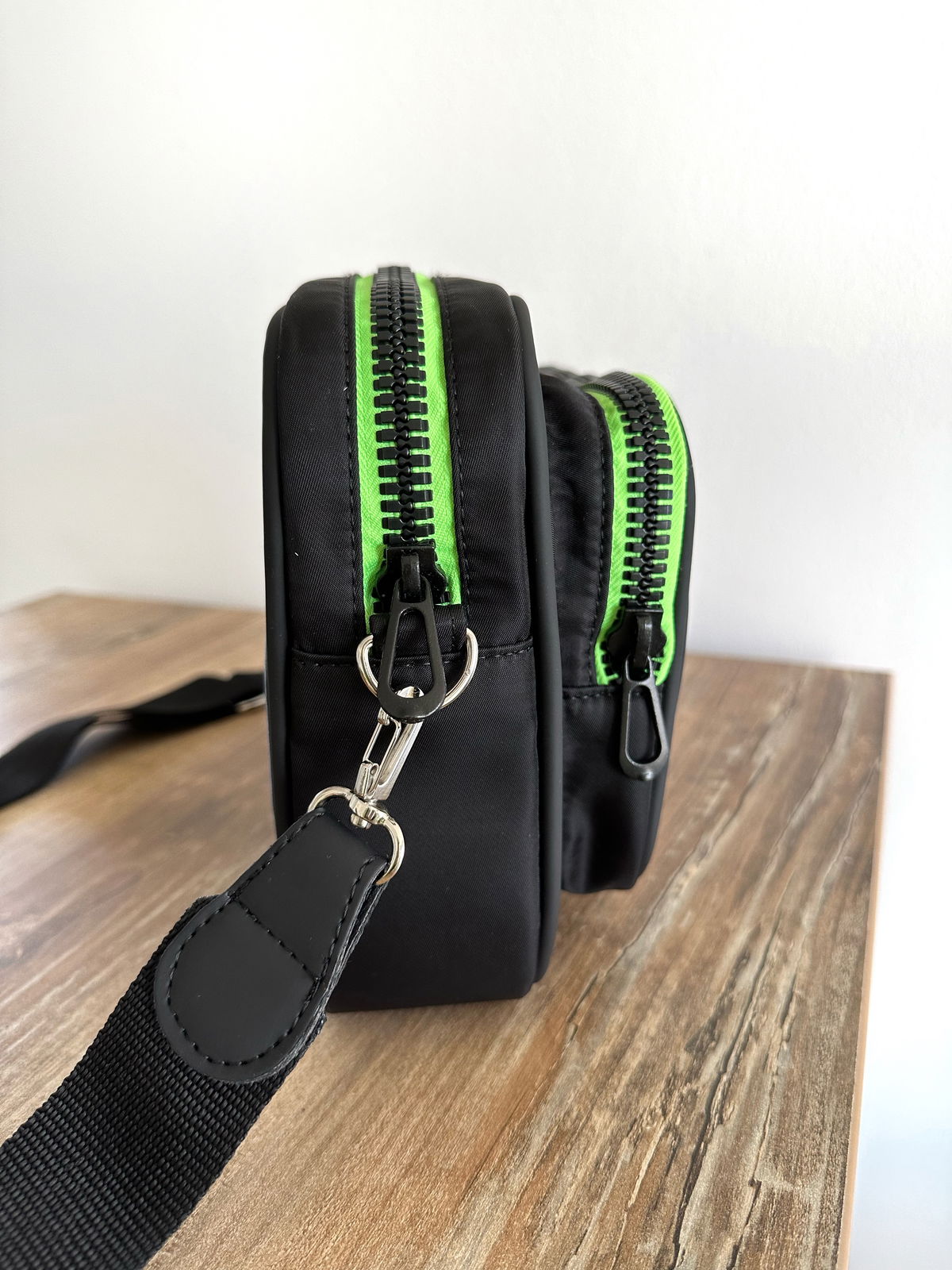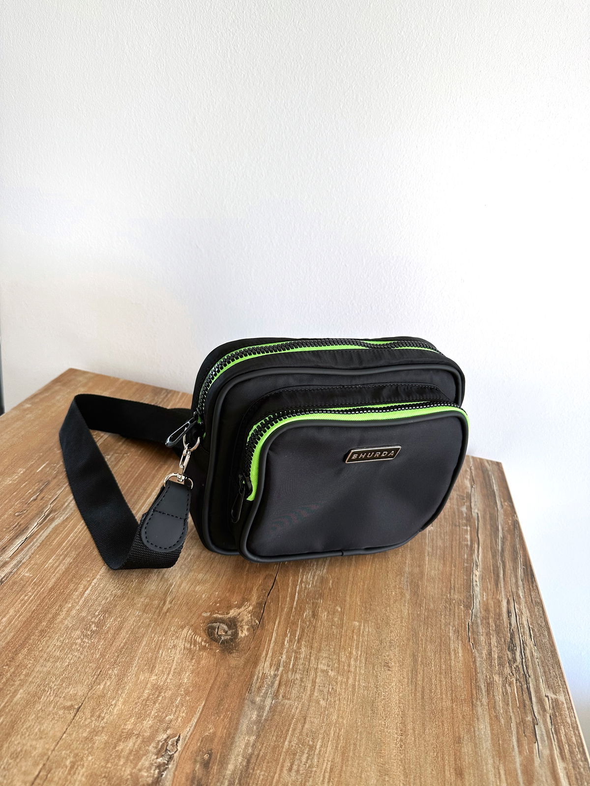 Bandolera de nylon impermeable con detalles en engomado negro