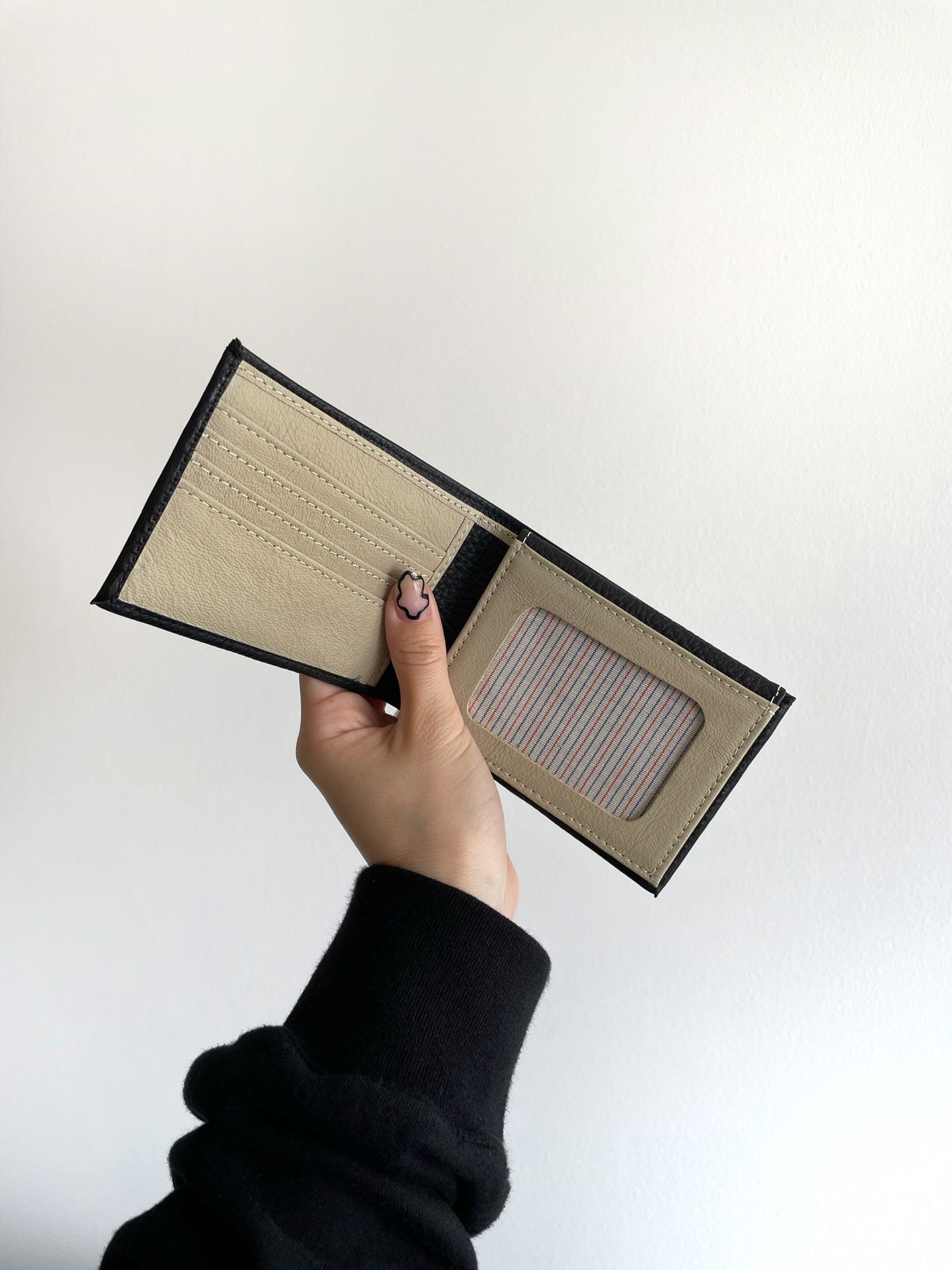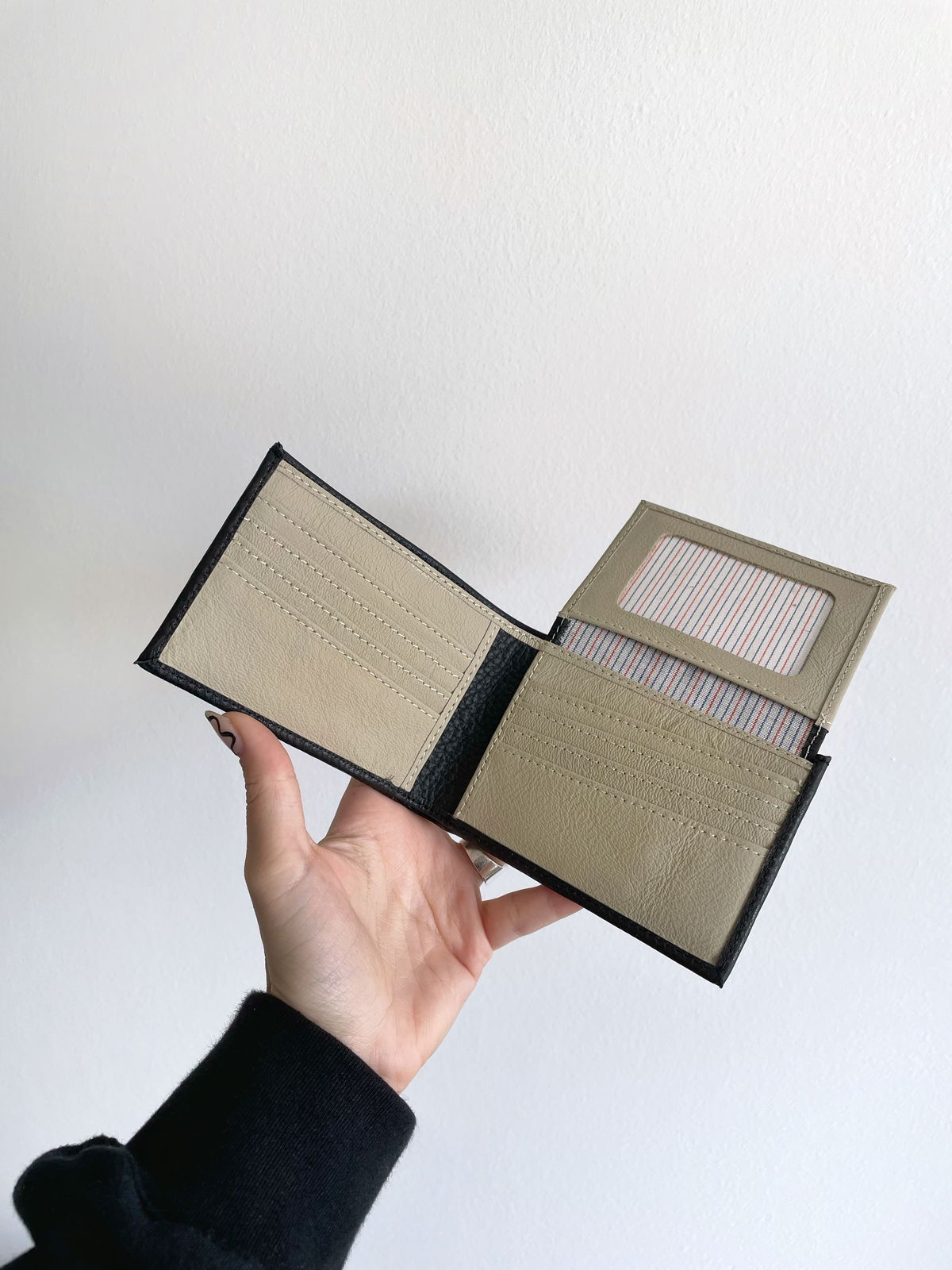 Billetera con espacio para 8 tarjetas, dos billeteros, volante con doble visor y dos espacios más de guardado.