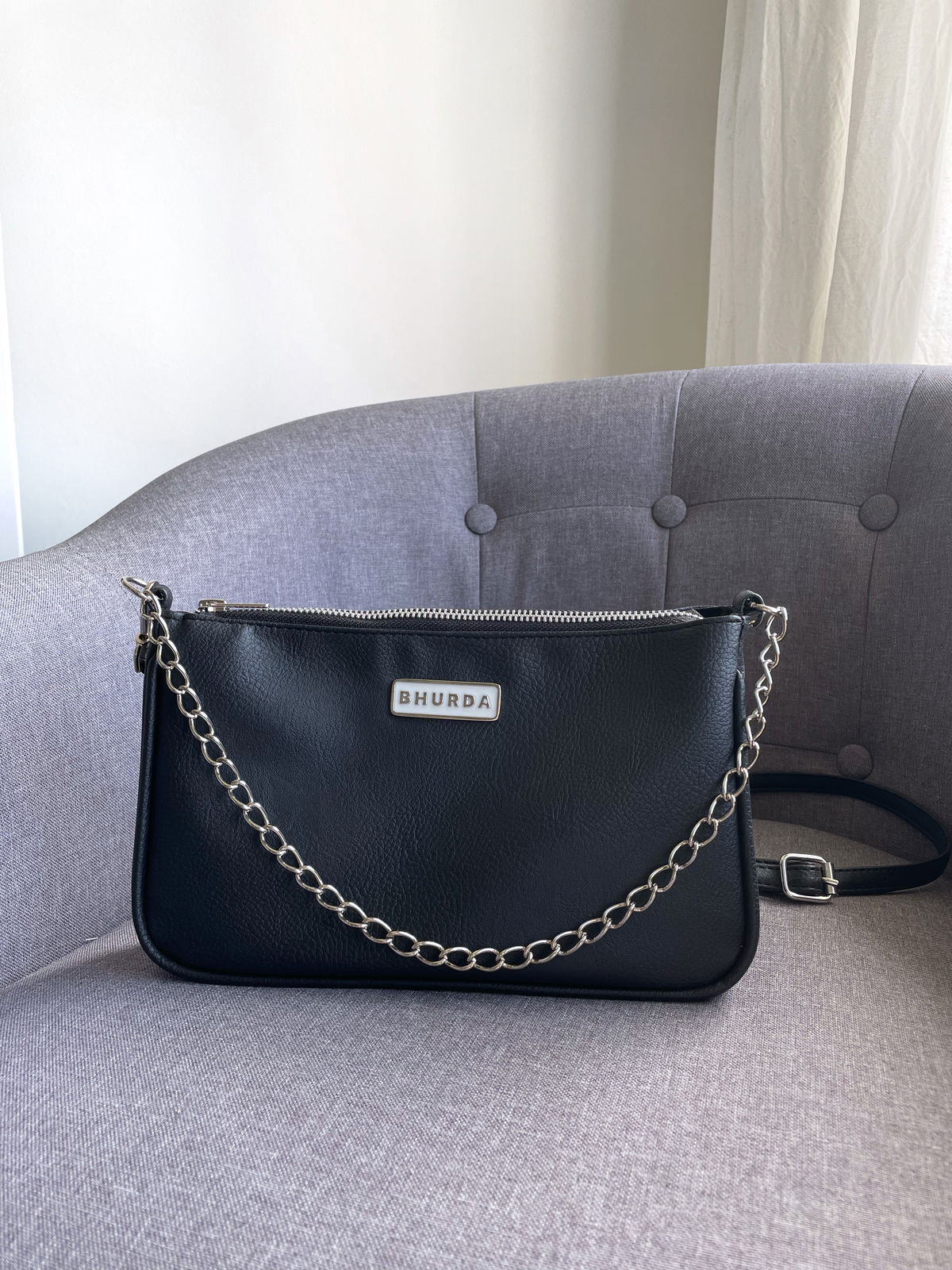 desmontable y regulable) o debajo del hombro (con la cadena)