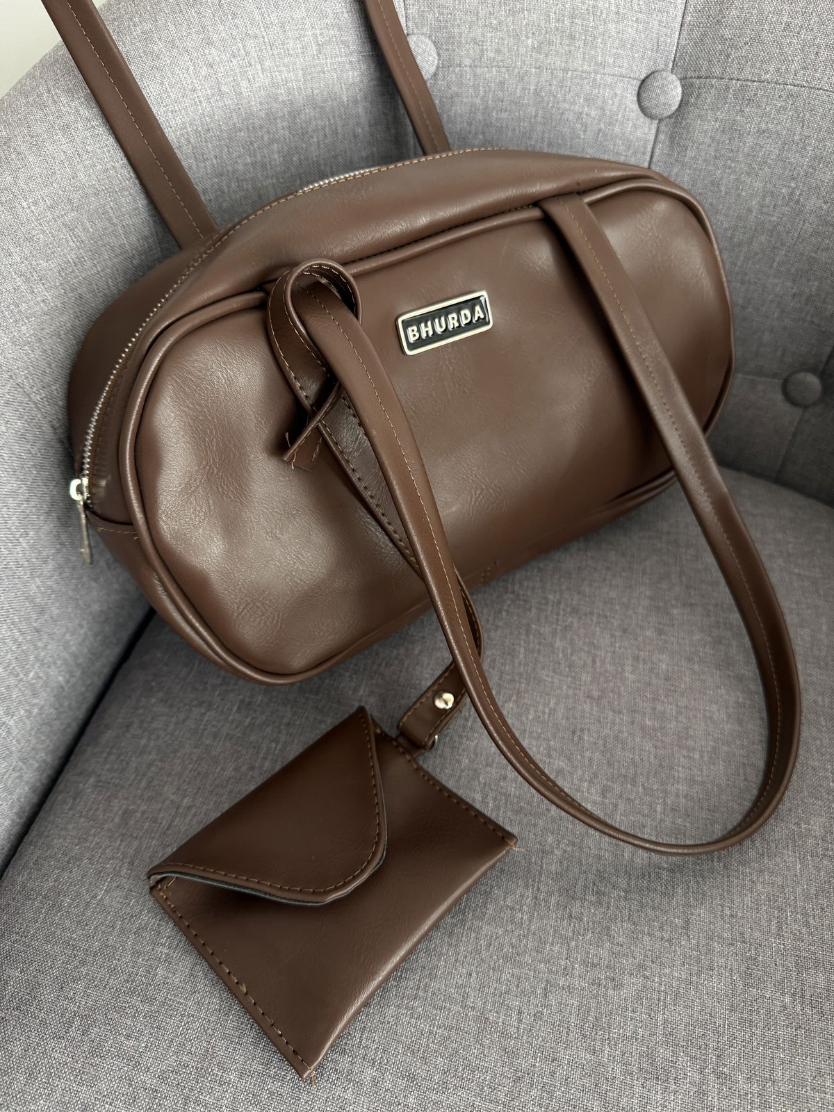 viene con correas fijas para que la lleves de bajo del hombro y con un sobre/monedero incluido!