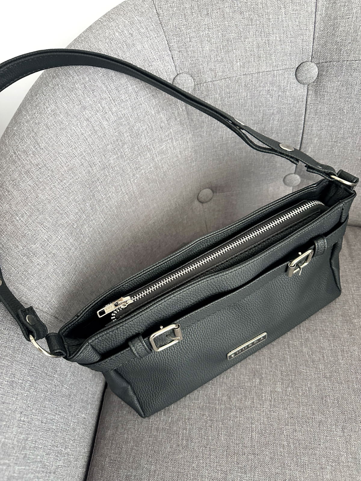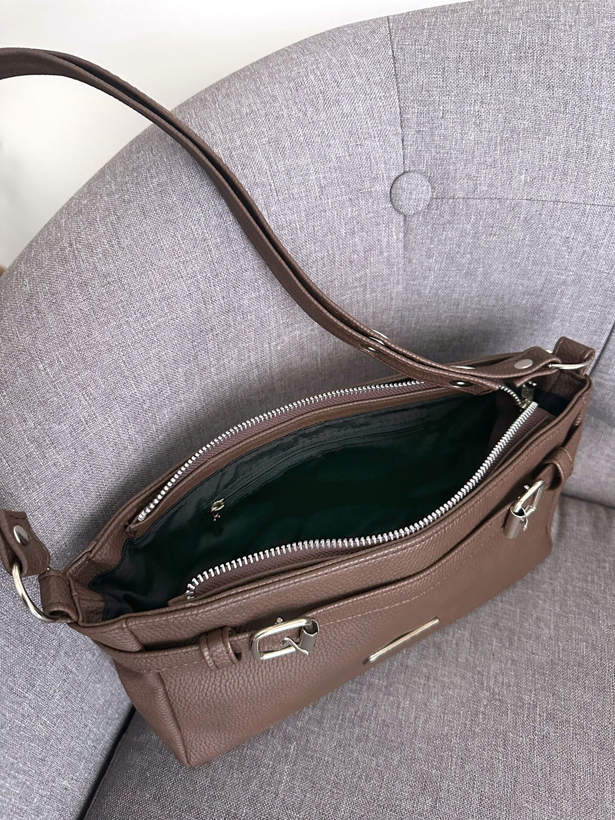 Usala como bandolera para el día o debajo del hombro para un look más chic y minimal. Todo en una sola cartera, práctica y versátil.