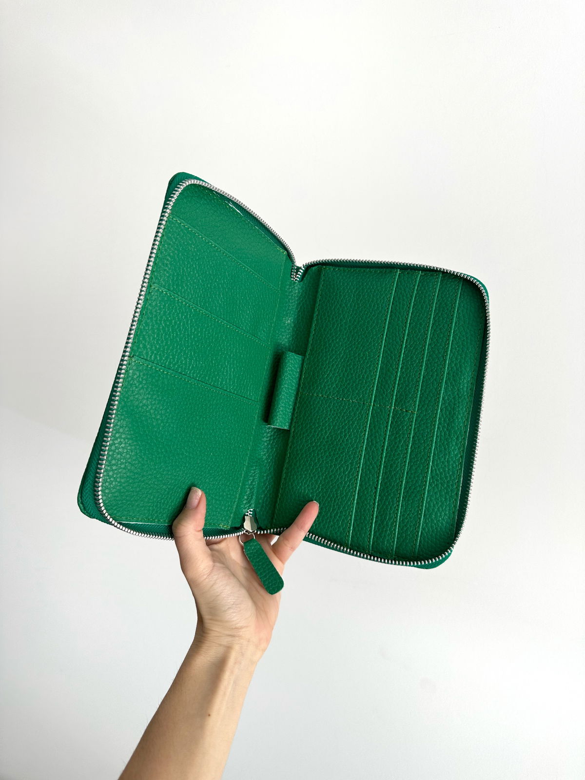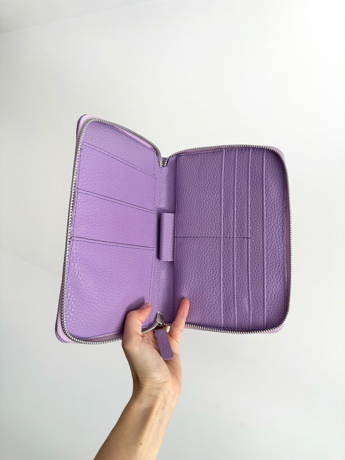 Portadocumentos con cierre YKK. El interior es del mismo color que el exterior, completamente forrado.