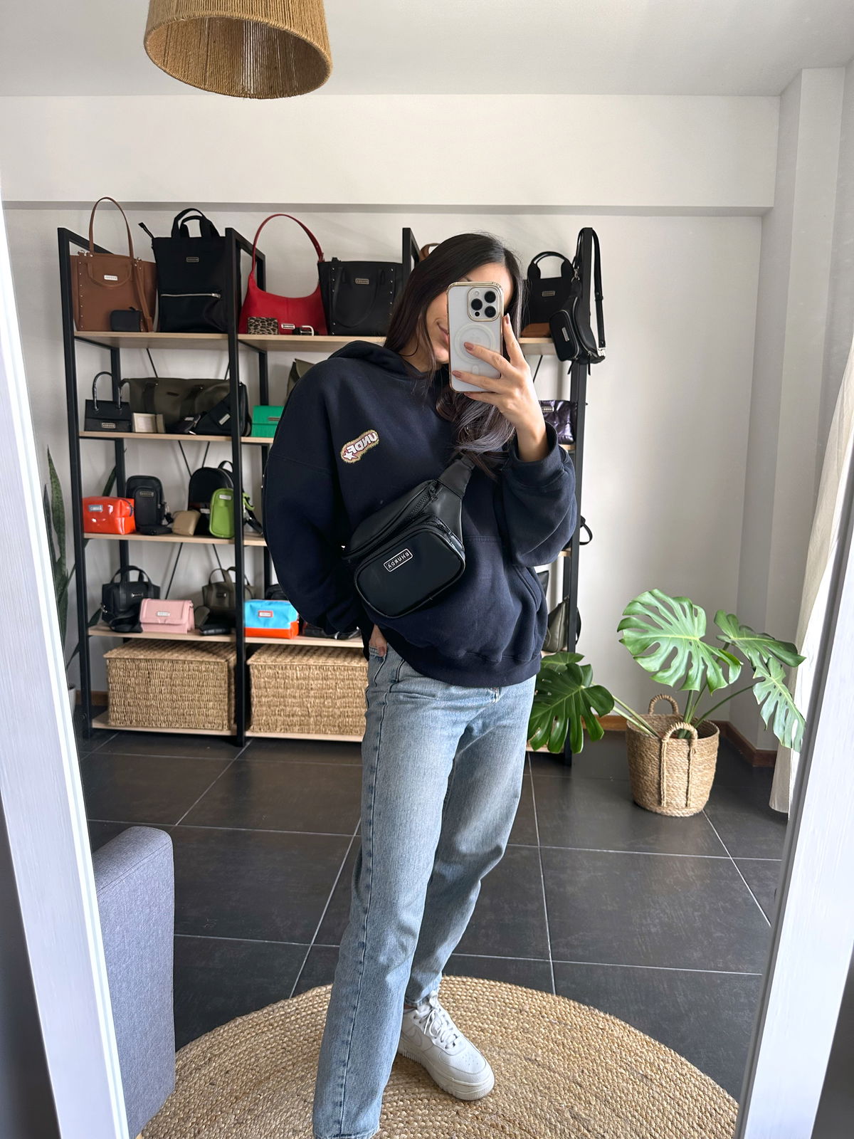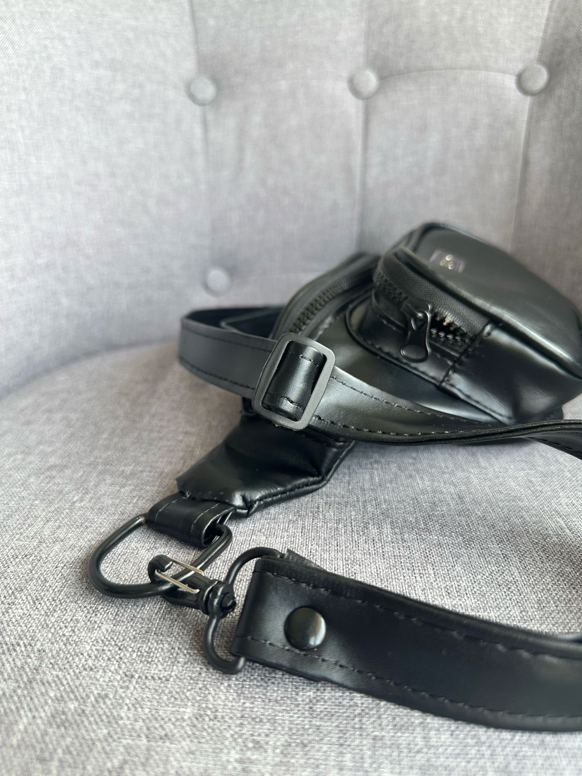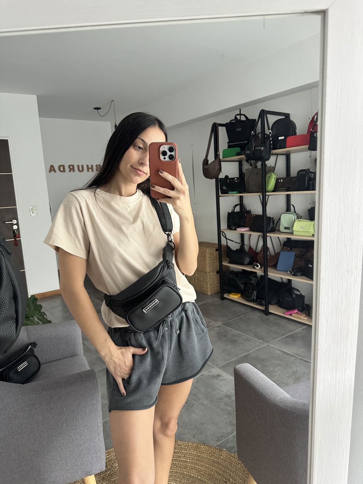 Tira regulable con mosquetón para ponerla y sacarla facilmente.